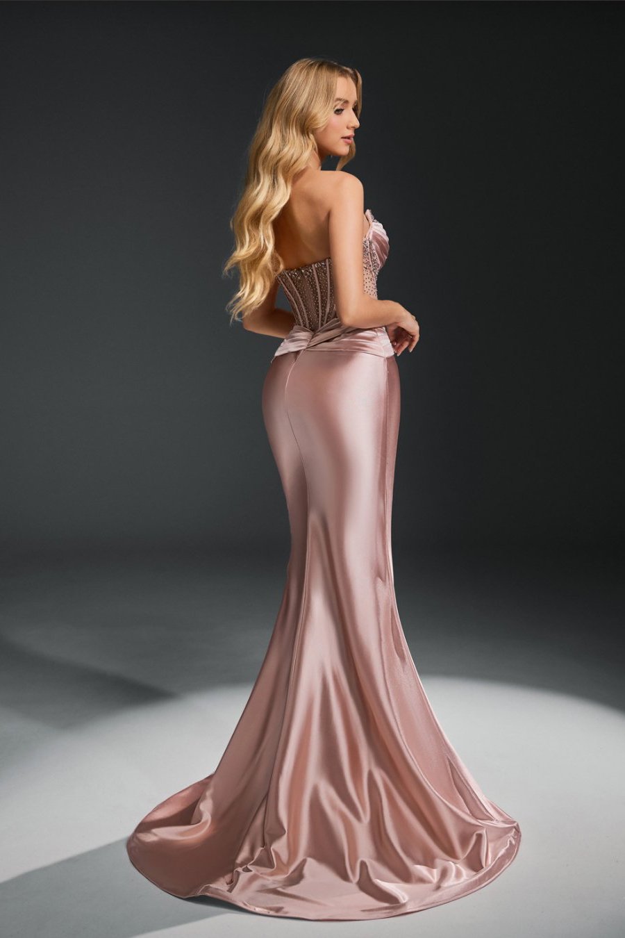 "جميع الشك والتطريز الموجود في الفستان منفذ يدويًا 100%."